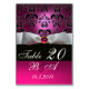 WHITE RIBBON, BLACK PINK FUCHSIA DAMASK MONOGRAM TABLE NUMBER