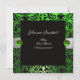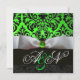 WHITE RIBBON EMERALD GREEN BLACK DAMASK MONOGRAM INVITATION