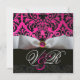 WHITE RIBBON PINK FUCHSIA BLACK DAMASK MONOGRAM INVITATION