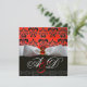 WHITE RIBBON RED BLACK DAMASK MONOGRAM Ruby Invitation