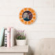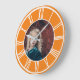 White Roman Numeral Border Orange Add Photo Round Large Clock