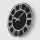 White Roman Numeral Border Pattern Black Round Large Clock