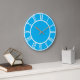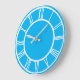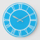 White Roman Numeral Border Pattern Sky Blue Round Large Clock