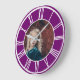 White Roman Numeral Border Purple Add Photo Round Large Clock