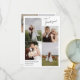 Wedding thank you card with a clean four photo collage and thank you in a neat signature script on one side. On the other side, two more photos and a printed thank you message and your names.