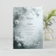 Invite your guests into a world of timeless elegance and pristine romance with this exquisite wedding invitation. The design features a stunning, soft monochromatic dusty gray backdrop, enveloped in a dreamlike, atmospheric mist or soft fog that gives the scene an ethereal quality. The borders are beautifully composed of intricate botanical elements, dominated by velvety white roses and delicate filler flowers like baby's breath, intertwined with fine, shadowy branches. Subtle pops of pale blue star-shaped flowers contrast with the white blooms. The soft, diffused lighting and rich floral detail ensure this card beautifully sets the stage for a classic, cool-weather, or destination celebration. This invitation card is ideally suited for a winter wedding ceremony, a high-end formal engagement announcement, or a serene vow renewal ceremony. It would also perfectly suit a chic bridal shower or a sophisticated seasonal holiday party. The card's captivating blend of pristine florals and a moody, monochromatic backdrop ensures it is versatile for any solemn ceremony, corporate gala, or refined birthday announcement.