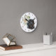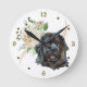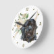 Behind the beautiful watercolor portrait of a Newfoundland dog on this clock is a pretty white rose bouquet. The bouquet and dog image are have an overlay swirl of faux glitter confetti. Dark gold numbers and diamond shaped markers around the perimeter make the clock easy to read. Perfect for anyone who has lost their heart to a Newfie.