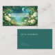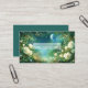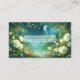 Define your brand with celestial magic and the ethereal beauty of a hidden fairytale realm using this captivating business card. The design centers on a spectacular nocturnal landscape, dominated by a massive, glowing full moon and a starry, deep blue sky. A magical castle or ancient city sits nestled among the distant cliffs, surrounded by glowing mist and deep pine forests. The entire scene is lavishly framed by an abundant border of lush white and pale yellow roses and wildflowers, creating a vibrant, romantic archway. Subtle fairy lights and sparkling stardust fill the air and vegetation, enhancing the enchanting, high-end atmosphere and making your card truly unforgettable. This business card is ideally suited for a luxury event planner specializing in fantasy or twilight-themed galas, a boutique hotelier wanting to convey a magical, serene setting, or a fantasy novelist or game developer seeking distinctive, narrative-driven branding. It would also perfectly suit a fine art print seller focused on mystical or romantic works, or an exclusive floral designer emphasizing white and luminous arrangements.
