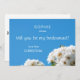 Beautiful floral wedding "will you be my bridesmaid" invitation featuring dreamy white roses and a clear blue summer sky.