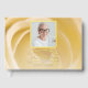 Personalise the elegant White Rose Flower Celebration of Life Memorial Guest Book attendees at your death tribute, wake or funeral service to sign. Customise it with the name of your deceased loved one, picture, birthday and day of death. This classy custom flowery guestbook features a pretty close up floral photograph of an off white cream coloured rose flower blossom with a gradient white overlay added and gold foil font text.