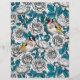 Hand drawn vector pattern with rose flowers and goldfinch birds. All elements for the pattern are drawn first with ink on paper then redrawn and coloured in Illustrator.