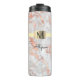 White & Rose Gold Marble, Gold Box Name & Monogram Thermal Tumbler