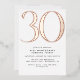 Modern-style 30th birthday invitations with a large heading "30" in real metallic foil. Your event details are printed below in matte black font. Rose gold accents on a crisp white background. (Background colours can be changed by using the design tool. You may also change the type of metallic foil.)