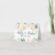 Elegant white roses, lush green foliage, and touches of gold leaf create a timeless floral arrangement on this classic wedding thank you card. The couple's monogram names and wedding date are showcased in flowing script and bold lettering at the center, making the names the clear design focal point. Personalize the names, date, and inside message for a keepsake your guests will cherish.