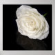 A white rose on a reflective black background. You can see the reflection of the rose.