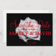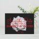 An elegant save the date card with a black background image of a white rose. Customise the card with different fonts, font size, and colours for the names and date. On the back centre of the card you have the option of providing additional information (ex. wedding website) or you can delete the area and leave blank. You can also change the card size, shape, and paper to meet your needs.