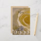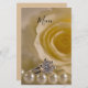 Customise the pretty White Rose, Ring and Pearls Wedding Menu with the details of the meal that you will serve at your engagement party, bridal shower or marriage reception dinner when you add the salad or first course, entree or second course and dessert or third course. This elegant flowery nuptial menu features a floral photograph of a white rose flower blossom and diamond engagement ring with a white pearl necklace.