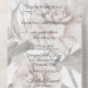 This elegant invitation has a minimalist appeal by featuring simple, elegant white rose silhouettes on a white background. It is perfect for any style wedding from the casual garden wedding to more formal affairs. The All-in-One wedding invitations are both beautiful and practical by combining the wedding invitation with an easy to remove perforated RSVP postcard. They are also quick and easy to prepare for mailing. Simply address the invitation, fold the back flap and seal with the included clear stickers. Once your guests receive the pre-addressed invitation they simply tear off the perforated RSVP card and drop it in the mail.