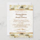 Subtle and elegant in gold edged damask, with a lovely profusion of white roses the border. Customise front and back with your Bridal Shower information.