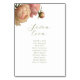 Stylish and chic. This wedding table number and seating chart card features lovely blush pink rose accents and contemporary fonts in olive green, against a white background. The design is repeated at the back.