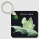 A stunning close up white rosebud with lingering raindrops. Flower photography by Susan. You can personalise this keyring with any text you like by clicking on Customise. This image is available on many products in my gallery.