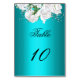 White Roses and Elegant Aqua Wedding Table Number