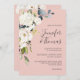 White Roses and Hydrangea on Pink Floral Wedding Invitation