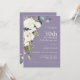 With a popular neutral colour scheme of white flowers and lavender purple background, this feminine 50th birthday party invitation features a corner bouquet of white watercolor florals with trailing eucalyptus greenery. The flowers include roses, hydrangeas and matching mixed florals for a lovely effect. The text pairings used in this design feature a combination of popular serif fonts. All of the text may be edited, so you can use this invitation for any age. Additionally, this invitation is available as printed invitations or paperless digital download invitations for sending electronically to your guest list.