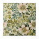 An enchanting wild white roses trim tile or backsplash, tinted with teal and olive green rose foliage over a faintly blue background. Seamless pattern.