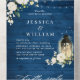 White Roses Blue Wood Lantern Wedding QR code All In One Invitation