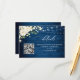 White Roses Blue Wood Lantern Wedding QR code Enclosure Card