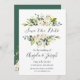 White Roses Bouquet Greenery Floral Wedding Save the Date Card.