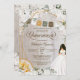 Quinceañera invitation in elegant white roses, peonies, and hydrangea with gold accents and papel picado bunting banner, charro hat, and gown. Check the shop for this invitation with girls in different hair colours and skin tones and more variations.