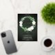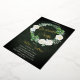 Beautiful watercolor white roses Graduation Party wreath design with lovely eucalyptus and fern greenery in shades from dusky sage to vibrant green real gold foil editable script text on a dark green aged and textured look background. All text other than gold foil text is in a creamy off-white. The theme is continued on back with a top and bottom floral and greenery swags on a dark green aged and textured look background. Composite design by Holiday Hearts Designs.