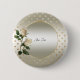 White Roses Gold Hearts Button