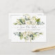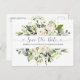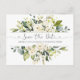 This design features an illustration of white roses with colourful vibrant foliage in watercolor style. Text "Save the date" is written in a Script font with joined hearts.
