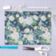 White Roses, Aqua flowers, green leaves on blue Background Decoupage Tissue Paper