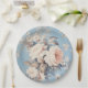 White Roses on Rustic Blue Background Paper Plate