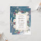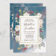 Christian winter wedding invitation depicts a gold frame surrounded by an elegant floral watercolor design including white roses, red berries, rustic twigs and greenery on an abstract blue background. It features inspirational introduction from Bible Verse Ephesians 5:31, "And the Two shall become One." The back Bible Verse 1 Corinthians 13:7-8, "LOVE… hopes all things, endures all things, LOVE never fails." If there is something you don't see or if you would like changes please contact me with the chat button on this page.
