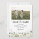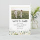 White Roses Save The Date with Photo Flat Card. This stylish & elegant Wedding Invitation features gorgeous hand-painted watercolor Greenery White Roses. Find matching items in the Watercolor Greenery White Roses Wedding Collection.