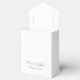 These wedding favour boxes feature white roses. The front and back of the box have roses, bride and groom names and wedding date. These wedding favour boxes are part of a collection which includes a full range of matching wedding stationery such as wedding invitations, reply cards, information cards, address labels, stickers, postage stamps, envelopes, favour stickers, wishing well cards, programs, menus, bridal gifts and much more. Visit the collection page in our store to see the full range.