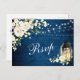 Create your own Response Card with this "Wood & White Roses Wedding RSVP with Meal Choice Postcard" template.