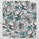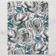 Beautiful hand-painted digital pattern, white roses with blue leaves.