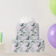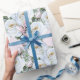 Rose wrapping paper.  White roses make a pattern over high quality paper.  The background is pale pink.  The rose leaves add a pretty green accent colour.