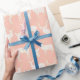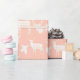 White rustic deer and deer head silhouettes on pink wrapping paper.