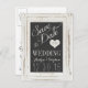 This chic vintage wedding save the date postcard features a printed image of a white-washed rustic wood frame with an chalkboard look insert. The typographic style of lettering adds elegance & romance. Perfect for a vintage, rustic, or country themed wedding. Include your own engagement picture on the back to share with all of your friends. We also offer the following matching products: