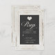 This chic vintage wedding RSVP Card features a printed image of a white-washed rustic wood frame with an chalkboard look insert. The typographic style of lettering adds elegance & romance. Perfect for a vintage, rustic, or country themed wedding.