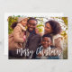 modern simple white script merry christmas photo card, personalise the holiday image and text.