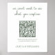 White and sage green wedding photo share QR Code sign. Place these signs at your wedding reception tables so guests can scan to upload the photos they took at your wedding reception to your album or social media. To generate a new QR code on the design, add the URL of your online wedding album or social media handle in the area provided, using the "personalise" feature. A brand new QR code will then be added to to the design.