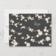 An original illustration of beautiful cream ivory white cherry blossoms or sakura spring flowers with light brown branches on a dark expresson brown grey/grey background. This is a modern wedding rsvp / response / reply card.